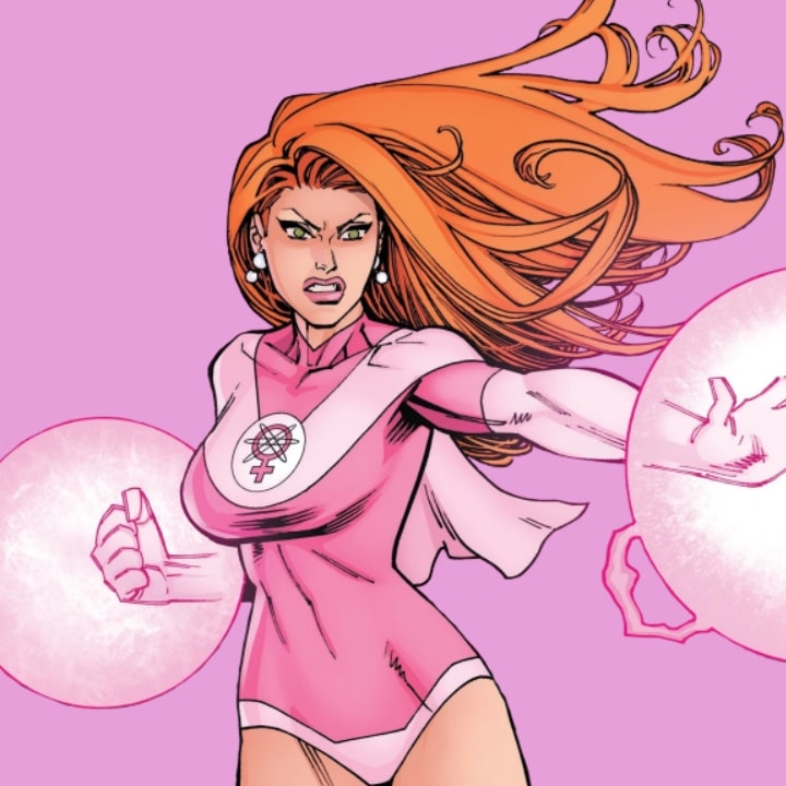 Orginally bred in a lab by Dr. Elias Brandyworth to be a living weapon for the government, Samantha 'Eve' Wilkins overcame her past and was adopted by her non-biological parents, eventually joining the Teen Team and going by the name Atom Eve.